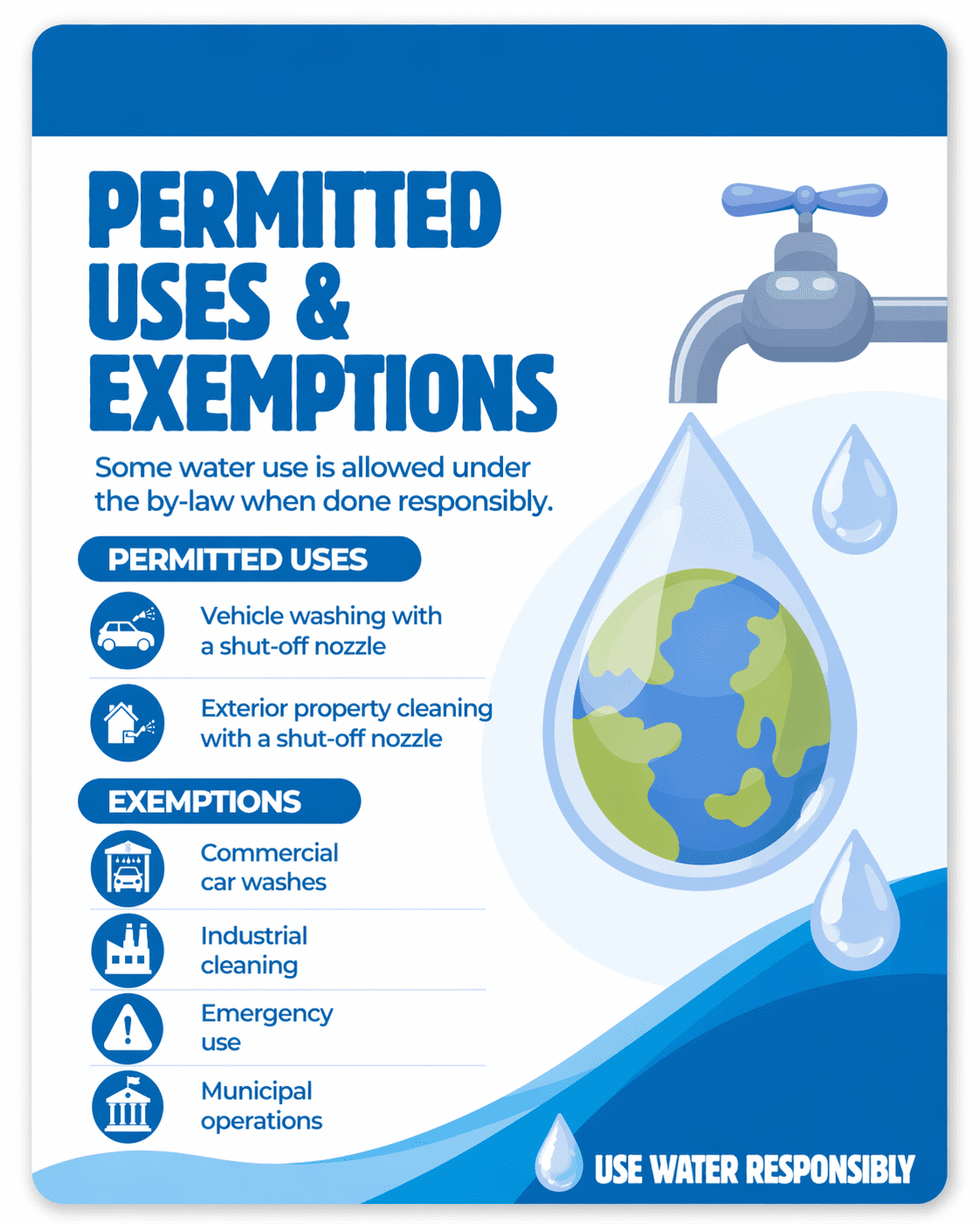 Vehicle washing and exterior property cleaning are permitted with a shut-off nozzle.